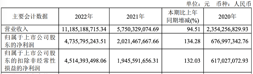 信息显示,万泰生物二价HPV疫苗于2019年12月30日获批上市,并于2020年5月正式投入市场。自2020年以来,该疫苗产品一直是促使万泰生物业绩飙升的主要动力。2020年—2022年,该公司营收分别为23.54亿元、57.50亿元和111.85亿元,分别同比增长98.88%、144.25%和94.51%。