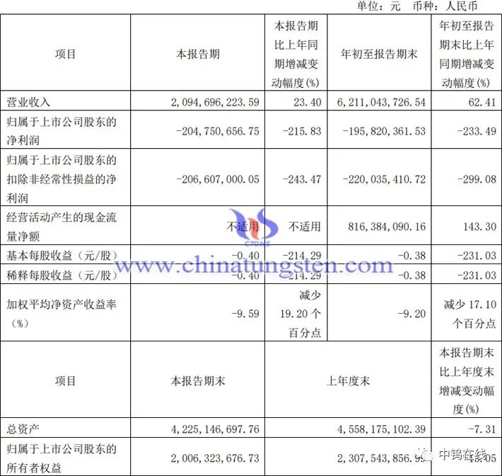 近日,吉翔股份发布报告称,公司2023年第三季度实现营收20.95亿元,同比上涨23.40%;归母净利润-2.05亿元,同比下降215.83%;扣非净利润-2.07亿元,同比下降243.47%;基本每股收益-0.40元,同比下降214.29%;报告期末,总资产42.25亿元,同比下降7.31%;归母所有者权益20.06亿元,同比下降13.05%。