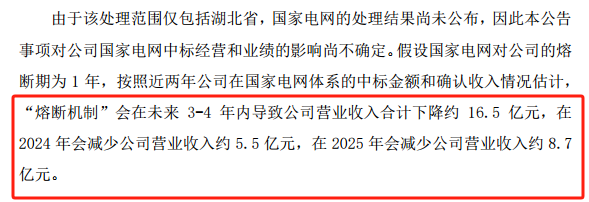 青岛证监局指出,“熔断机制”对鼎信通讯的中标金额产生重大影响。鼎信通讯在国家电网的中标产品金额,占其营业收入比重较高,构成其生产经营的外部条件发生重大变化,属于《证券法》第八十条第二款第六项规定的重大事件。