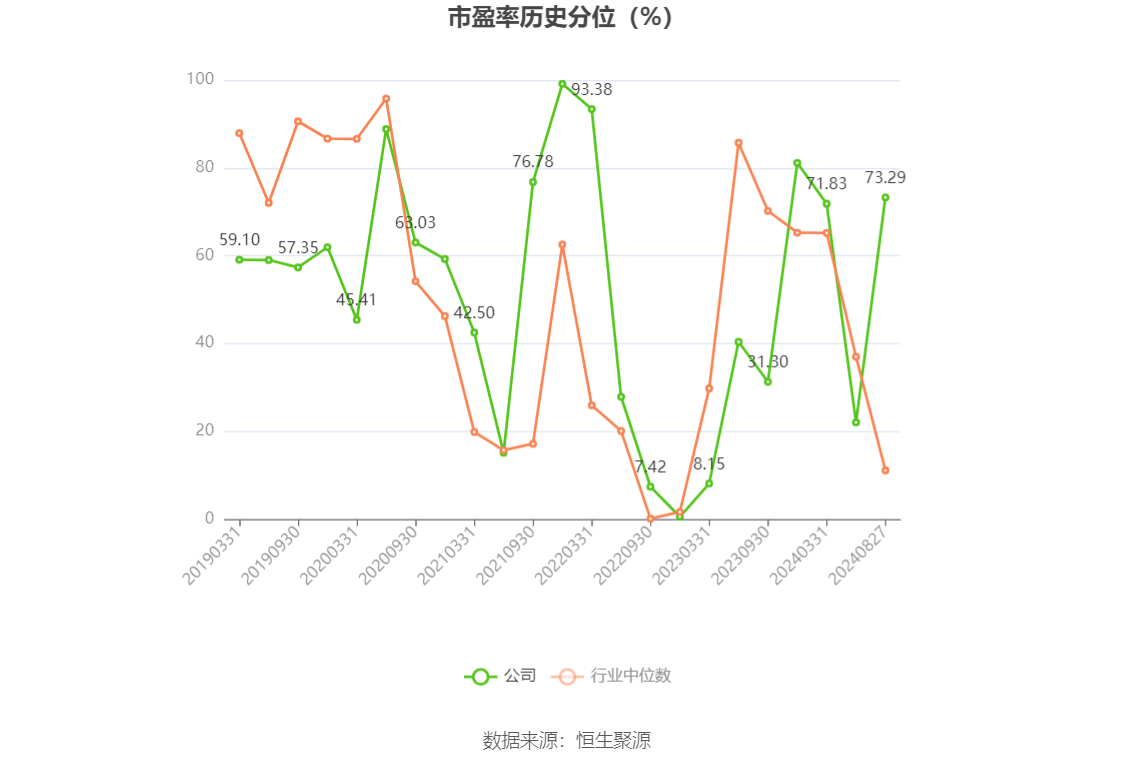 市盈率为负时,不显示当期分位数,会导致折线图中断。