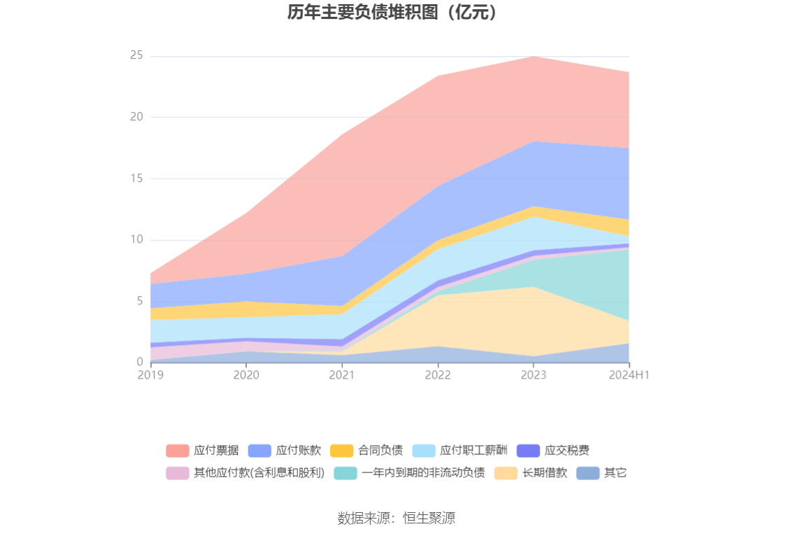 负债重大变化方面,截至2024年上半年末,公司长期借款较上年末减少68.06%,占公司总资产比重下降6.38个百分点,主要系部分长;一年内到期的非流动负债较上年末增加164.07%,占公司总资产比重上升6.49个百分点;应付职工薪酬较上年末减少78.80%,占公司总资产比重下降3.60个百分点;应付票据较上年末减少10.84%,占公司总资产比重下降0.87个百分点。