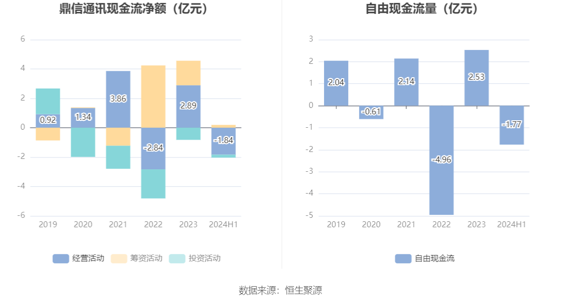 进一步统计发现,2024年上半年公司自由现金流为-1.77亿元,上年同期为-3.55亿元。