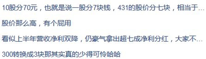 10派70元的数字可谓“大手笔”,但对于吉比特高达400元的股价,股民们似乎并不买账。有股民直接指出,“1股送7元,400元每股,相当于4元每股的送7分”“300元以下可以考虑”。