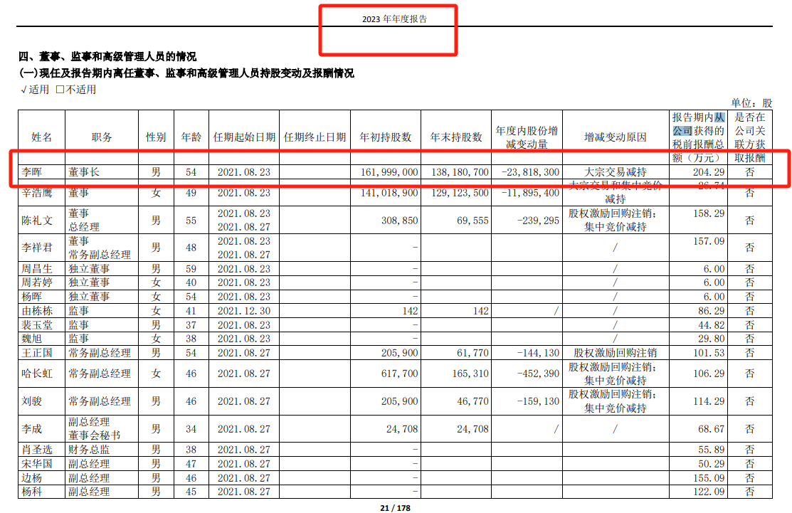 风语筑董事长李晖2023年从公司获得的税前报酬总额204.29万元,2022年为194.4万元,增加了9.89万元。