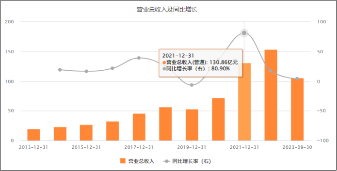 2021年,公司营收飙升至130.83亿元,增幅达146.35%;净利润更是达到了20.1亿元,比2019年暴增15.6倍。其中,国内业务是主力增长点,全年收入达83.68亿,同比增长117%。市场预期也是提前拉满,提前将公司股价在2021年7月拉升至250.71元/股的历史高位,市值超过1400亿元,也获得了“扫地茅”的称谓。