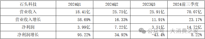 表1 石头科技2024年前三季度营收和净利润情况