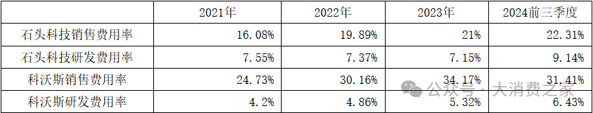 表4 石头科技和科沃斯2021年至2024年前三季度销售费用率和研发费用率情况