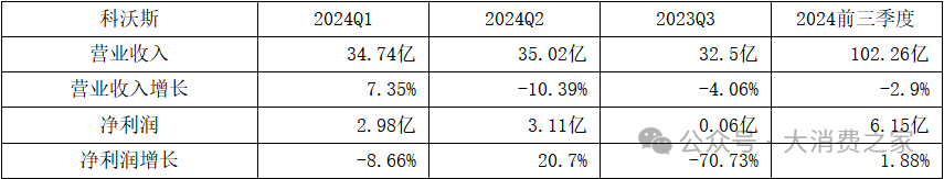 表2 科沃斯2024年前三季度营收和净利润情况