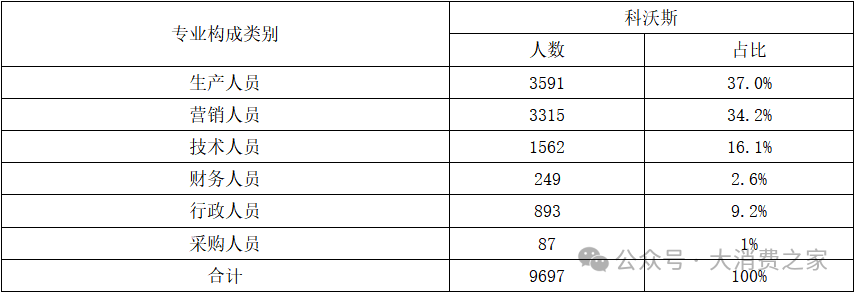 表6 科沃斯2023年员工构成