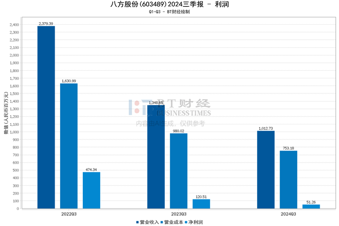 综上所述,八方股份在2024年第三季度面临着严峻的市场挑战,导致营业收入和净利润大幅下滑。尽管公司在资产负债管理方面有所改善,但整体财务表现仍需进一步提升。未来,公司或需加强市场拓展和成本控制,以应对市场环境的变化。
