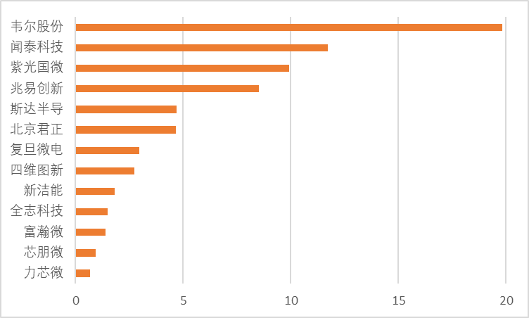 ——企业家的有力支持。虞仁荣2007年在上海成立韦尔股份,最初主要从事半导体产品分销业务。10年后,韦尔股份在上交所主板上市,营收规模24亿元,上市时体量依然偏小。2019年韦尔股份完成了对豪威科技的一场蛇吞象式并购。并购完成后,韦尔股份的主营业务也从代理销售转变为芯片设计,华为、小米、奔驰、宝马、海康威视等龙头企业成为韦尔股份的新客户,行业话语权和盈利能力不可同日而语。2020年,虞仁荣以60亿美元的身家位列《2020福布斯全球亿万富豪榜》第244名,随后更是连续多年登上福布斯全球亿万富豪榜,问鼎中国芯片行业首富。