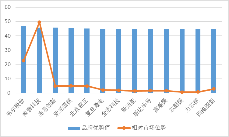 图3 “芯片”赛道企业品牌优势值和相对市场位势(100分制)