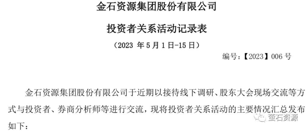 答:目前是可以分享的是年报中已经披露的是我们在做锂矿石的实验。我们瞄准战略性矿种的方向,进行技术攻关,等待机会。