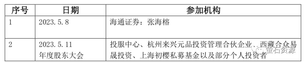 2023年5月8日调研接待人员为公司副总经理、董事会秘书戴水君;2023年5月11日年度股东大会接待人员为公司董监高人员。