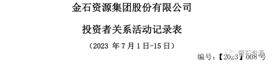 金石资源集团股份有限公司于近期以参加机构策略会、投资者线上交流、线下调研等方式与投资者、券商分析师等进行交流,现将投资者关系活动的主要情况汇总发布如下: