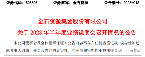 金石资源集团股份有限公司关于2023年半年度业绩说明会召开情况的公告