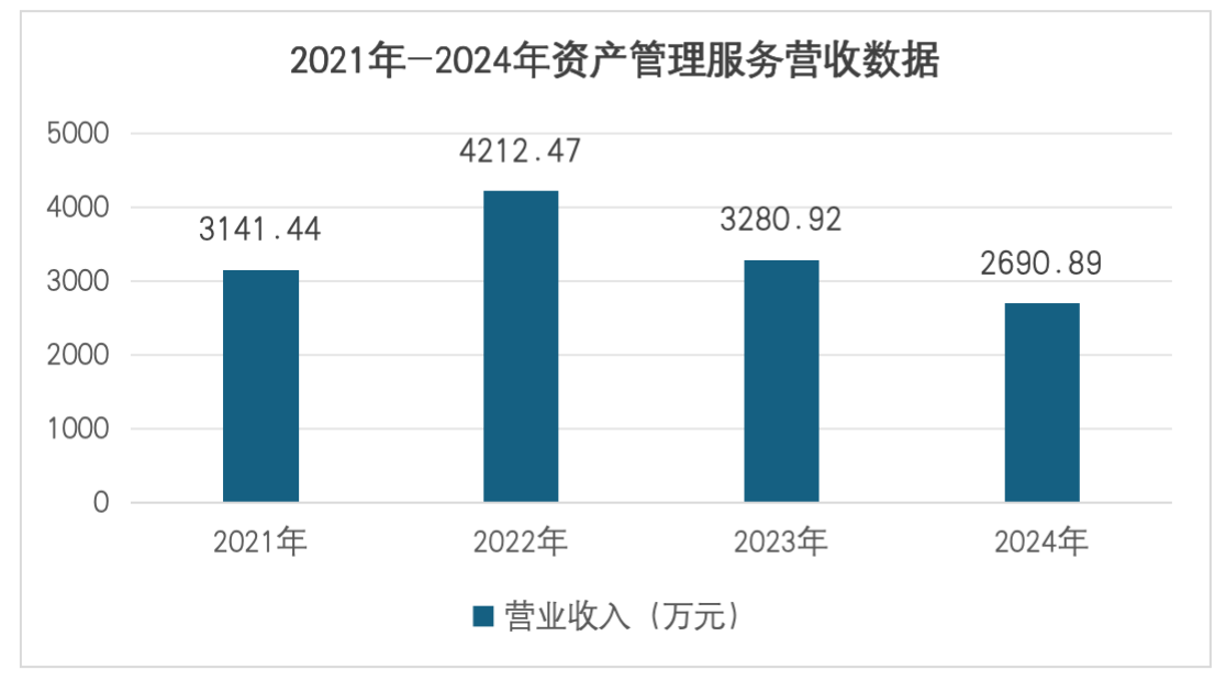 聚焦降幅最大的资产管理服务,比对2021年至2024年的营收数据,可以看到,南都物业资产管理服务板块近几年来营收金额整体呈下降趋势。
