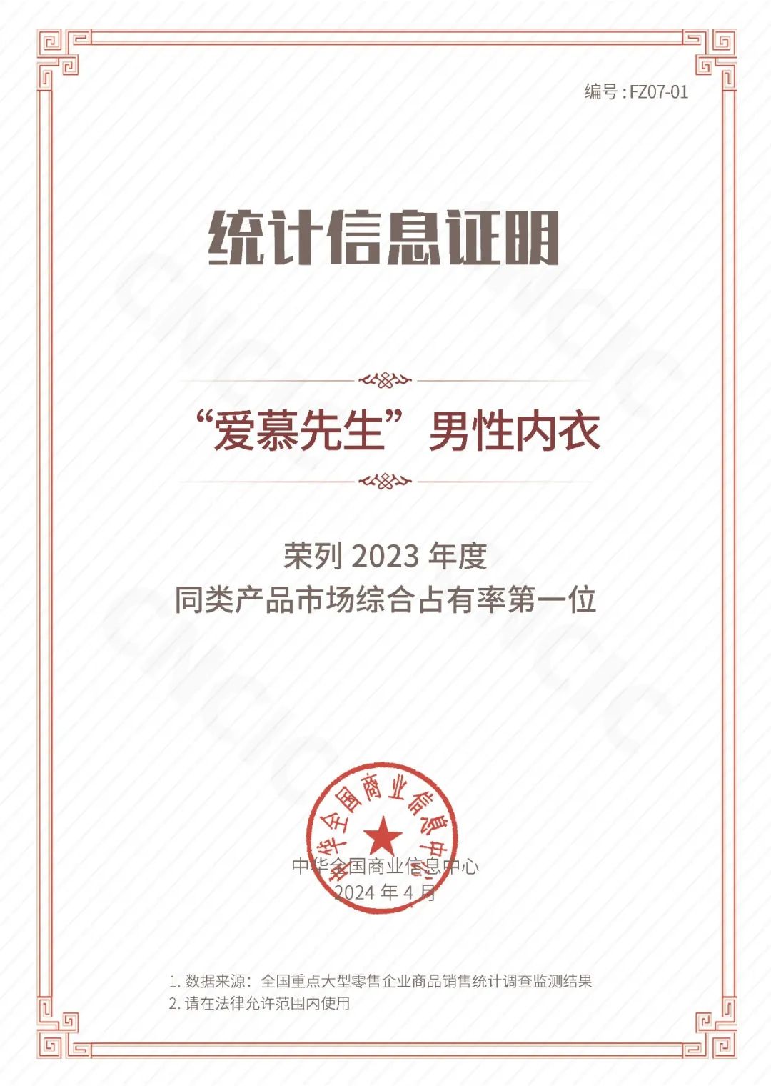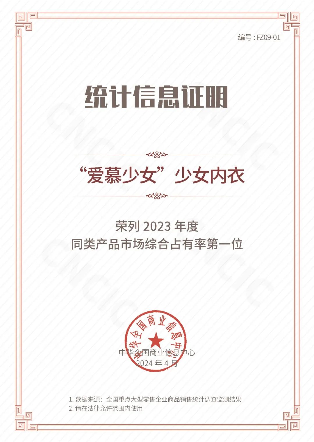 2024年4月19日,“2024中国消费品市场发展大会暨第三十二届中国市场商品销售统计结果发布会”召开,爱慕股份旗下多品牌在内衣细分市场领域荣获综合占有率第一的殊荣。