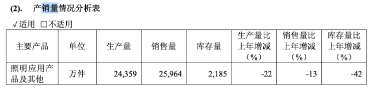 在行业整体表现疲软的背景下,欧普照明的主营产品在去年出现产销双降的情况。2024年,公司照明应用产品及其他产销分别为2.44亿件、2.6亿件,同比分别下滑22%、13%。同时,公司照明应用产品及其他业务实现收入为70.33亿元,同比下滑8.59%。