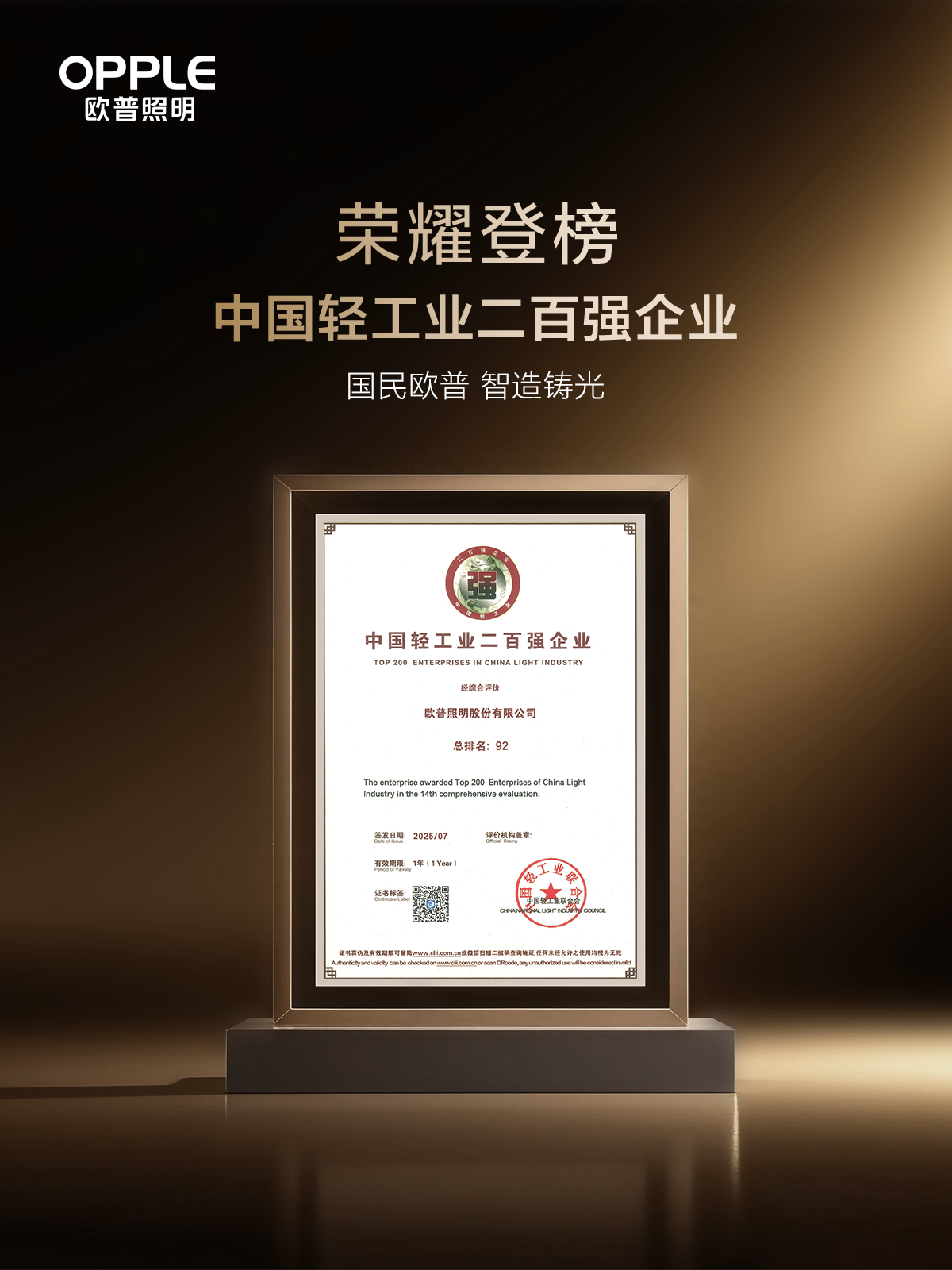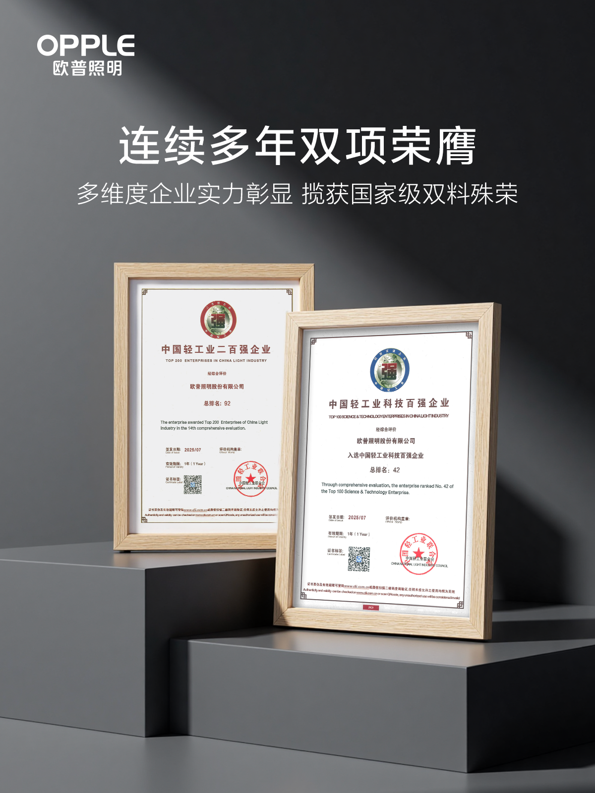 连续多年双项荣膺,充分彰显了欧普照明在多维度的强劲实力,是中国轻工业联合会对其实力的高度认可,更是其迈向未来的全新起点。未来,欧普照明将在技术研发上持续发力,以科技为引领、品质为基石,持续深耕照明领域,为用户打造健康、科技、专业、时尚的高品质照明光环境,为推动中国照明行业乃至轻工业的高质量发展贡献更大力量 。