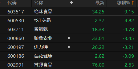 食品饮料板块盘初跳水 绝味食品触及跌停