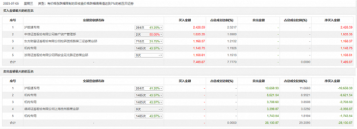 7月5日,绝味食品今日跌停,龙虎榜数据显示,上榜营业部席位全天成交3.56亿元,占当日总成交金额比例为36.99%。其中,买入金额为7489.87万元,卖出金额为2.81亿元,合计净卖出2.06亿元。