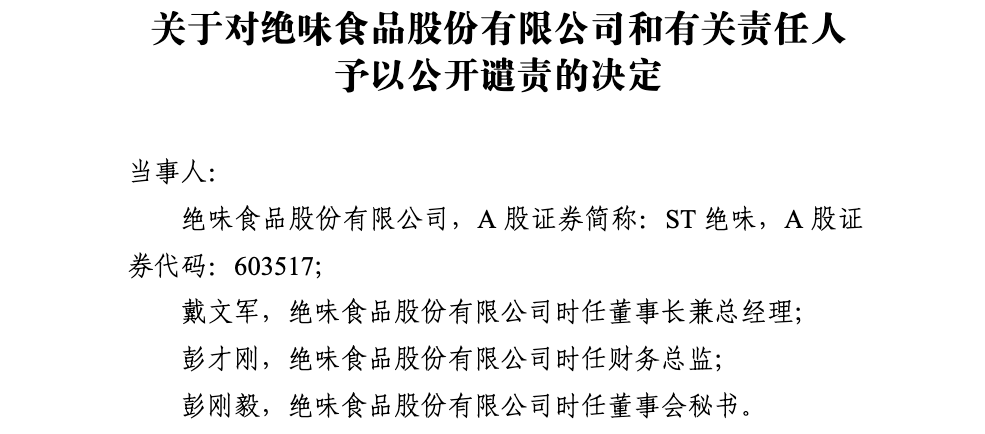 《处分决定》基于《上市规则2020》第16.2条、第16.3条、第16.4条、《上市规则2022》第13.2.1条、第13.2.3条、《上海证券交易所纪律处分和监管措施实施办法》及《上市公司自律监管指引第10号——纪律处分实施标准》,对绝味食品、戴文军、彭才刚、彭刚毅予以公开谴责。处分将通报中国证监会和湖南省地方金融管理局,记入证券期货市场诚信档案数据库。不服者可在15个交易日内申请复核,但执行不停止。