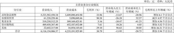 卤制品生产与销售是公司的核心主业和业绩来源,其主要供应加盟店,营收占比超七成。但2025年,公司主业面临门店收缩与产能闲置的双重困境,导致营收与盈利能力双双下降。