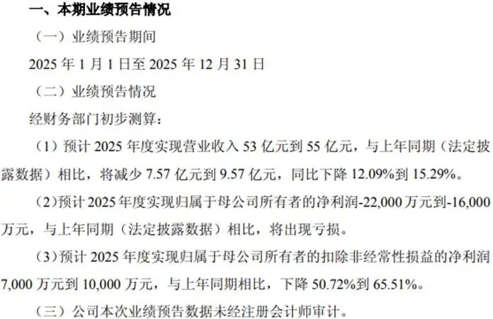 但补税事件只是加剧了公司面临的盈利压力,公司仍预告2025年营收将下降12.09%到15.29%,这与公司主业承压密切相关。