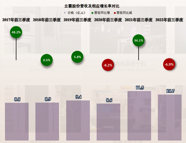 从营收上看,受到下游家电行业的影响还是明显的,营收同比下降了6.9%,这和2020年同期的情况还不一样,当时应该是受疫情的临时影响,因为2021年已经"报复式"增长回来了,这一次会不会也这样,从现有的情况看,有点难。