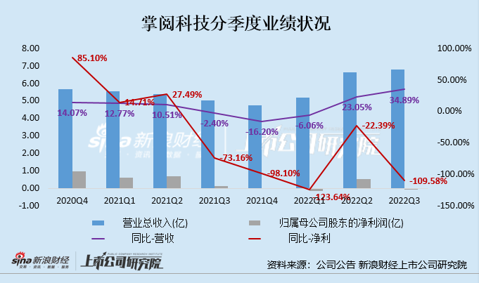 用户增长遇到瓶颈的同时,公司的营业收入增速也放缓了,特别是进入2021年后,掌阅科技第三季度、第四季度营收规模均呈现同比下降态势。