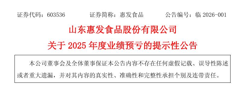 2026年1月12日,惠发食品发布了2025年度业绩预亏的提示性公告。