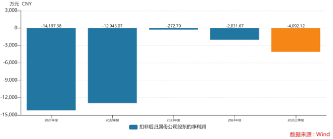 近日,速冻调理肉制品加工企业惠发食品(603536.SH)发布2025年年度业绩预告,公司预计2025年归母净利润为亏损7500万元至6200万元,同比下降约273.81%-352.19%;预计归母扣净利润为亏损7800万元至6500万元,同比下降约219.93%-283.92%。这并非孤立的财务下滑,自2021年起,公司归母扣非净利润持续为负,累计亏损超3.5亿元。