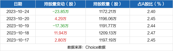 10月24日,海兴电力被沪股通减持23.85万股,最新持股量为1172.21万股,占公司A股总股本的2.40%。