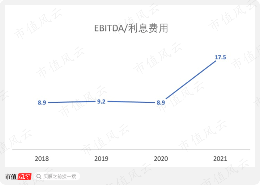 从EBITDA利息覆盖倍数来看,公司的偿债能力也得到了改善。