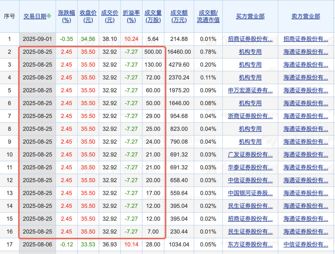 大宗交易数据显示,刘安省的减持发生在2025年8月25日,分成15笔,一共减持了1000万股,成交价32.92元,刘安省靠这次减持套现了3.3亿元。