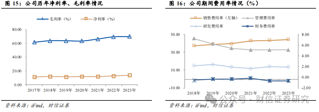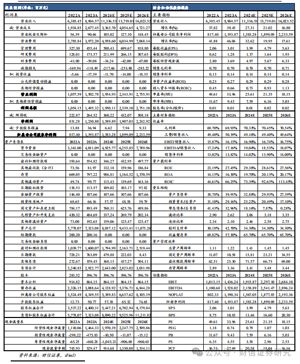 综上所述,我们预计公司2024-2026年收入分别为113.37/137.19/160.24亿元,同比增长27.31%/21.02%/16.80%。公司2024-2026年毛利率分别为70.33%/70.45%/70.54%。