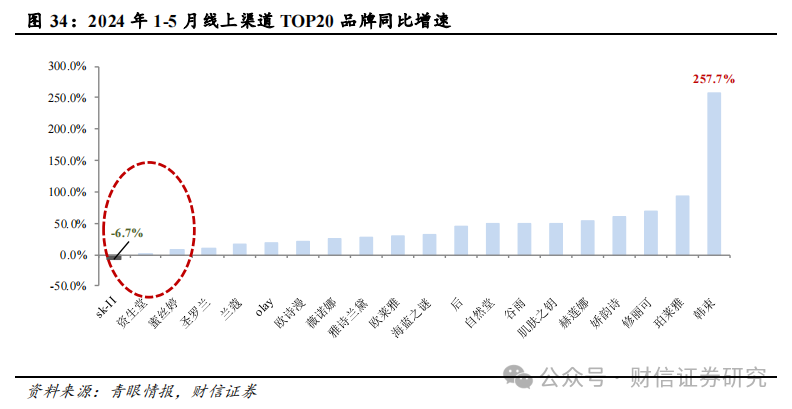 据青眼情报统计,2024年1-5月TOP10品牌集中度为13.5%,相较于2023年和2022年分别下滑2.6pct和4.8pct,市场竞争进一步加剧。从品牌增速来看,头部增长势头强劲,但分化有所加剧。TOP20品牌GMV同比增长38.9%,高于线上美妆市场整体增速。TOP20品牌中绝大多数均取得双位数的增长,韩束更是以257.7%的增速成为TOP20品牌中同比涨幅最大的品牌,仅有SK-II、资生堂为代表的日系品牌表现相对不佳,SK-II甚至出现了同比负增长,资生堂仅同比增长0.7%。