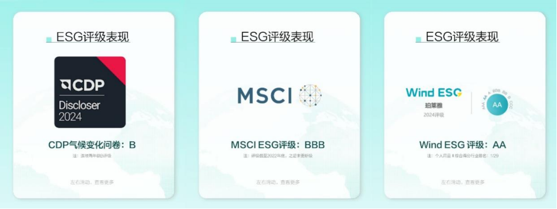 作为行业先行者,珀莱雅在2024年获权威认可:连续两年Wind ESG评级为AA级、个人用品Ⅲ综合得分行业排名第一,获评Wind中国上市公司ESG最佳实践100强;在国际评级CDP气候问卷中,连续两年维持B评级。