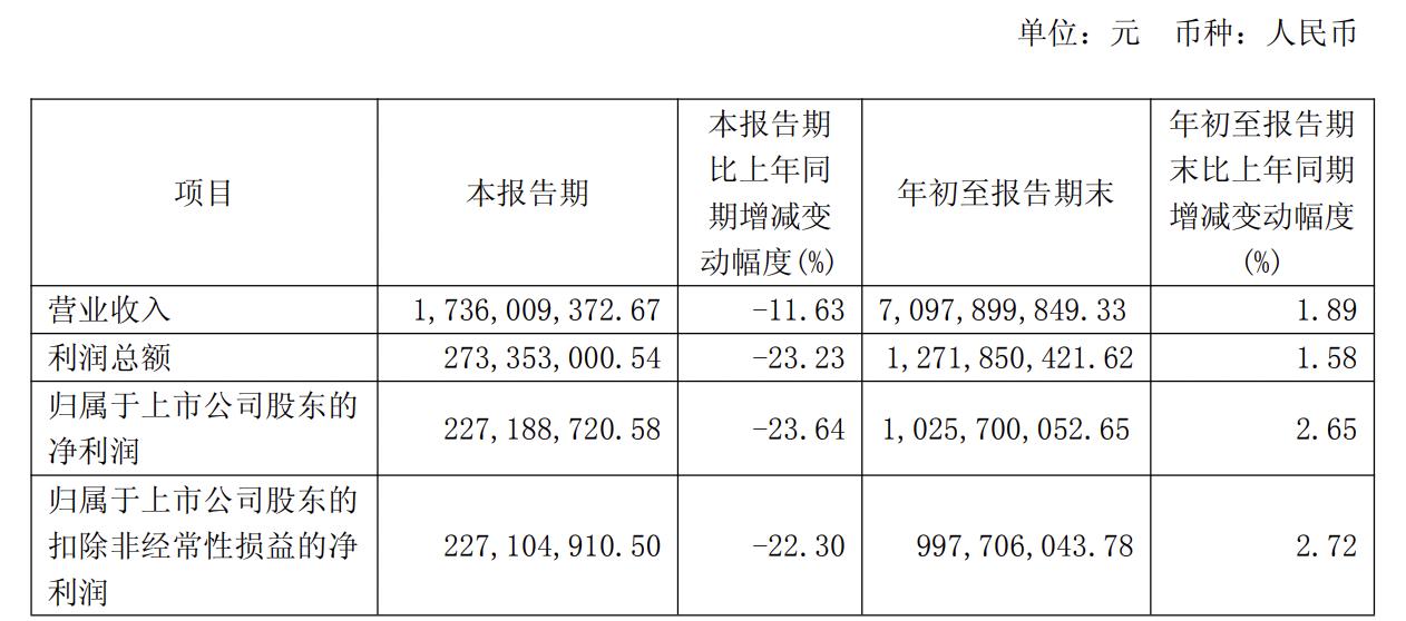 2025年前三季度,珀莱雅营业收入为70.98亿元,同比增长1.89%;归母净利润为10.26亿元,同比增长2.65%。其中第三季度营业收入为17.36亿元,同比减少11.63%;归母净利润为2.27亿元,同比减少23.64%。