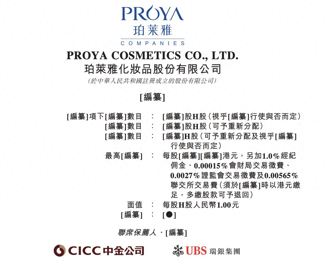 瑞财经刘治颖 10月30日,珀莱雅化妆品股份有限公司(以下简称:珀莱雅)向港交所主板提交上市申请书,中金公司、瑞银集团为其联席保荐人。