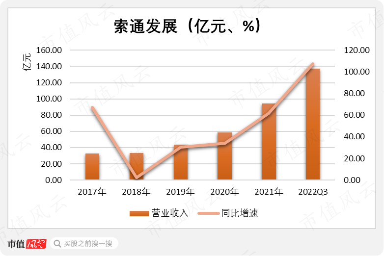 自2017年上市以来,索通发展的营业收入持续增长,并且最近几年加快增长。