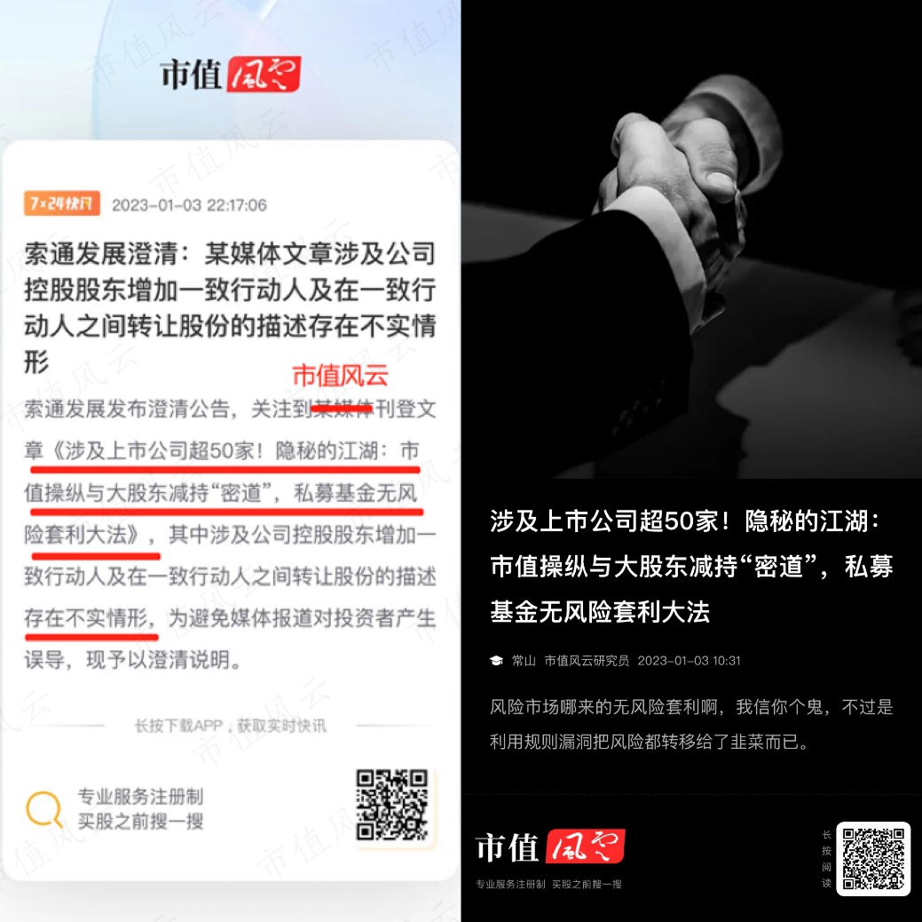 1月3日晚,索通发展(603612.SH)发表一则澄清公告,称某媒体发表的《涉及上市公司超50家!隐秘的江湖:市值操纵与大股东减持“密道”,私募基金无风险套利大法》一文,关于控股股东转让股份的描述存在不实。