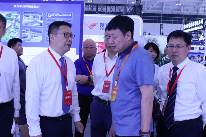 此次展会为期三天,水利部总工程师仲志余,中国水利学会副理事长兼秘书长段虹莅临展位参观指导。韩建河山董事长、总裁田玉波详细介绍了公司当前发展现状和技术创新情况。