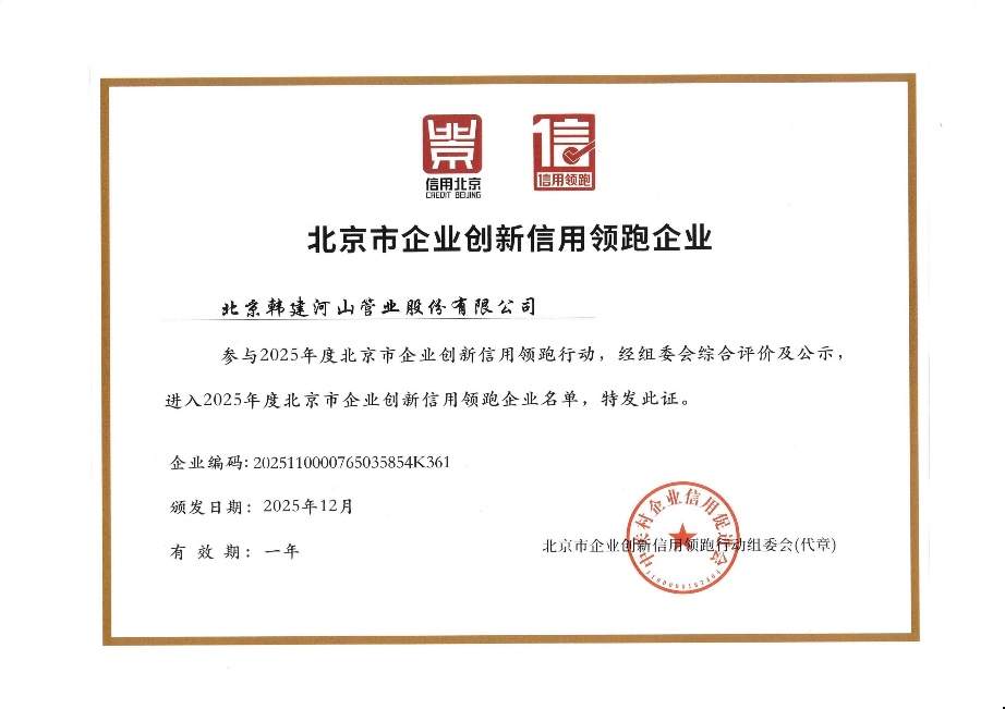 作为北京市企业创新信用领跑企业, 韩建河山 始终坚持以质量为保障,以诚信为基石,将技术创新作为企业发展核心,将诚信经营视作企业宝贵财富。此次入选,不仅是对 韩建河山 过往发展成果的权威认可,更是对公司积极践行社会责任、引领行业建设的高度肯定。