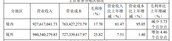 清源股份收入主要来自于境外市场,但从去年年报披露的数据来看,境外市场的收入增速从33.27%降至7.51%,增长显著承压。
