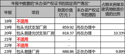 另外,发行人23年年报披露,存在包头易捷厂房尚未办妥产权证书,账面价值约为房屋及建筑物整体账面价值的10%,再往前查阅年报,可发现该厂房是18年转固的,且19年、20年均提及其未办妥产权证书。而20年-23年年报中披露的暂时闲置固定资产账面价值与披露的未办妥产权证书的账面价值一致,估值之家推断,发行人持有的这部分账面价值占比约10%的包头易捷厂房在18年转固之后至今6年仍未办妥产权证书,一直闲置,无经济利益流入,存在应计未计提减值准备的较大可能性。