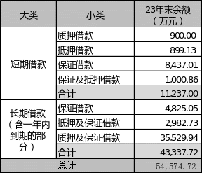 23年末,发行人银行借款金额约为54,574.73万,其中短期借款11,237万、长期借款43,337.72万(含一年内到期的长期借款6,427.68万),从下方类型可以看出,这些银行借款都是担保类借款,无纯信用借款。