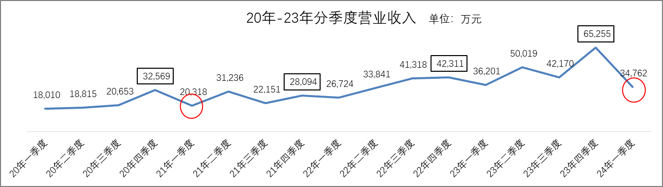 从发行人20年-23年整体分季度营业收入来看,并未呈现明显的季节性特性,20年和23年的四季度收入环比增长较多,其中20年四季度环比增长57.69%,23年四季度环比增长54.74%。但四季度小高峰后,21年一季度和24年一季度收入的环比变动率分别为-37.62%、-46.73%,分季度收入稳定性不足。