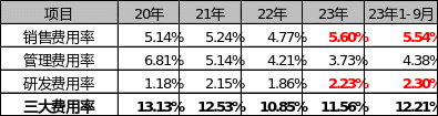 从下表可见,23年销售费用率和研发费用率已经大幅提高,高于20年、21年、22年费率,且这两大费率的提高已经完全抵消了因规模效应导致的管理费用率减少,使得23年三大费用率高于22年三大费用率,23年1-9月亦然。在此背景下发行人仍选择按最低的22年费用率进行效益测算,存在特意取低费率估高利润的可能性。即便不用均值而用相对较低的23年费率11.56%来测算,该项目经营10年的营业利润也将减少11,618万,约为目前测算利润总额的9.22%。